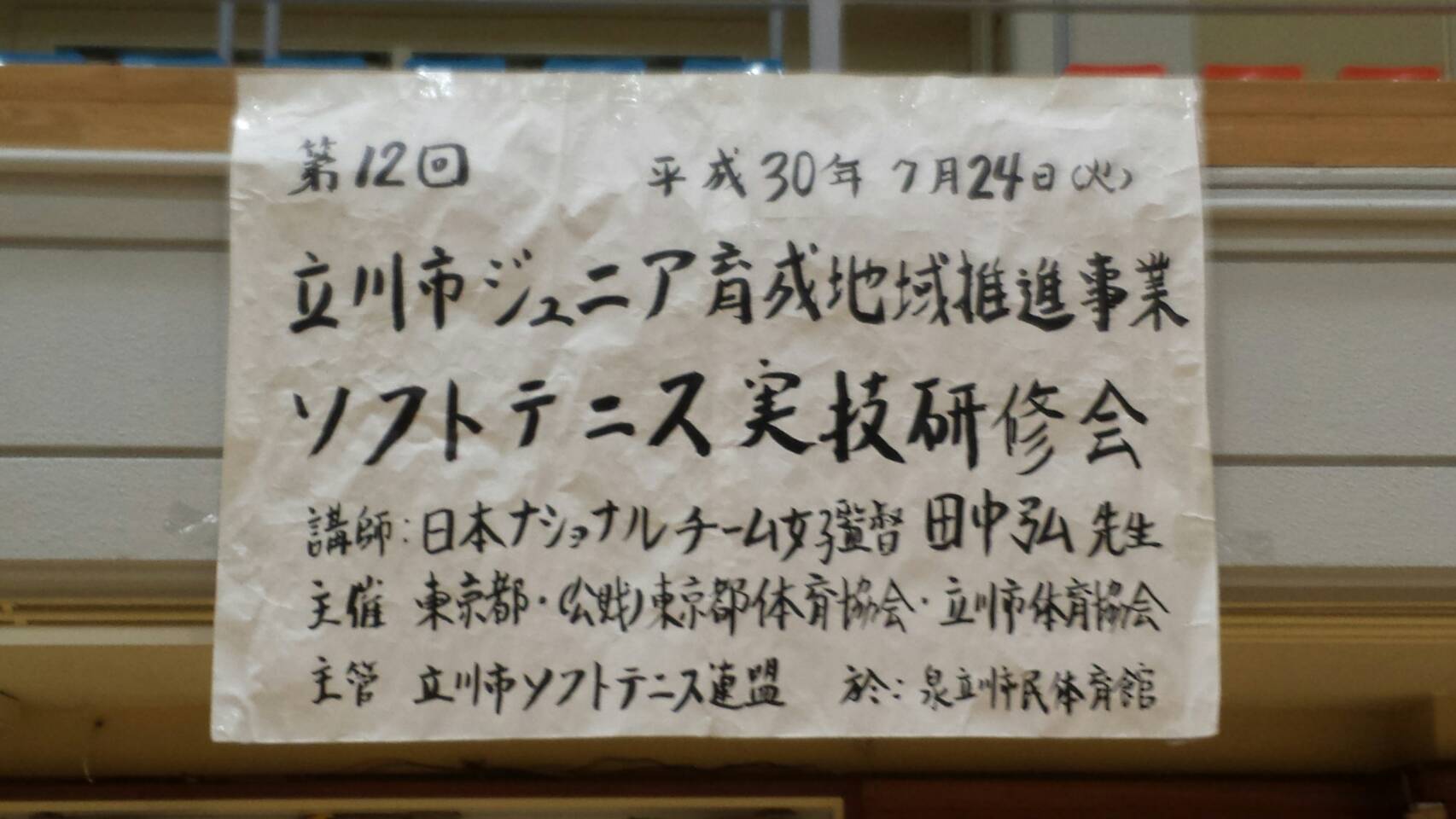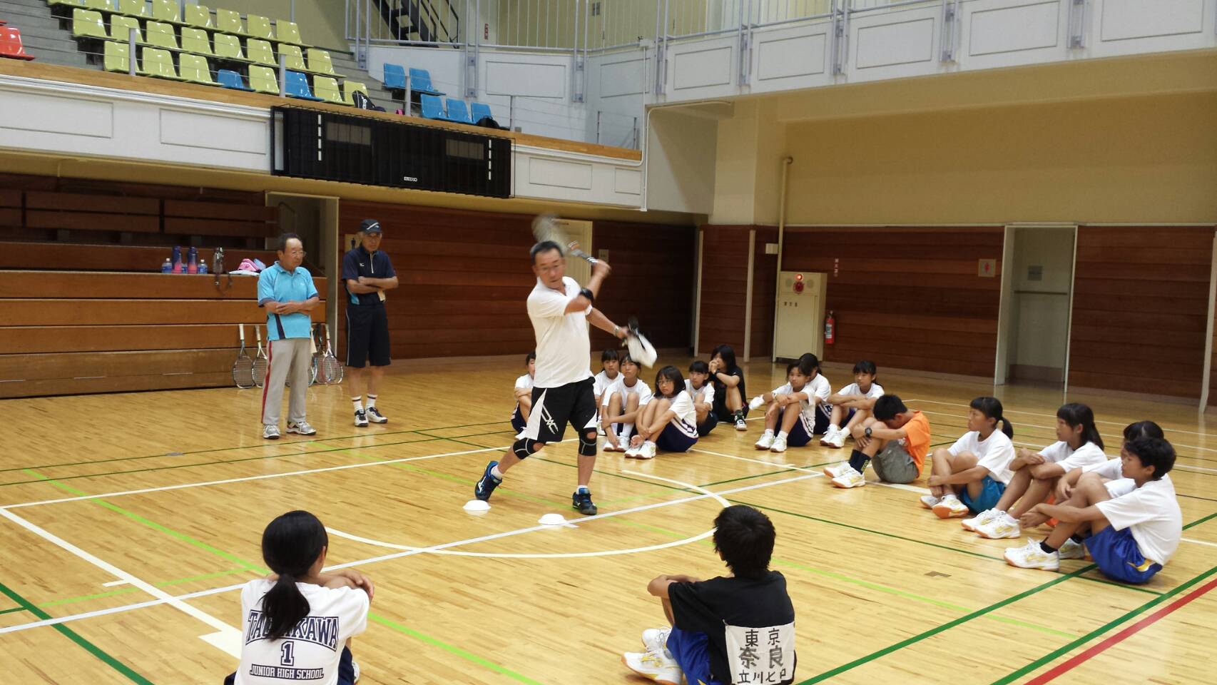 7/24 第12回ジュニア育成実技研修会を行いました 本年も泉体育館にて、全日本女子監督 田中 弘先生をお招きして、第12回ジュニア育成実技研修会を行いました。 都大会と重なり、参加人数は例年よりやや少ないものの、うまくなるための気づきを教えていただきました。 スタンス(膝と足の向き) 体軸と回転 上記を踏まえてのフォア4本打ち ボレー(コッキングとヒンジング) 手投げボールのボレー(上記の確認) バック(手首の返し) バック4本打ち フォアバック、ステップを入れての4本打ち 共有: クリックして X で共有 (新しいウィンドウで開きます) X Facebook で共有するにはクリックしてください (新しいウィンドウで開きます) Facebook いいね 読み込み中… 関連
