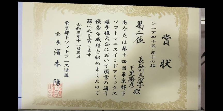 12/5日 都下シニアミックスで長谷川・下里ペア準優勝